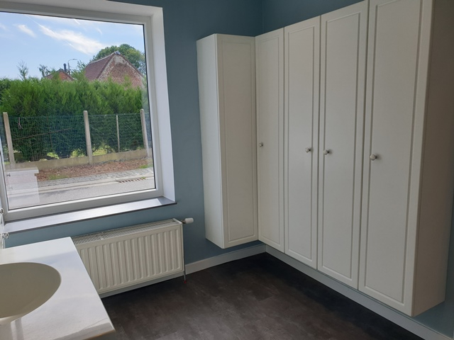 Dit gelijkvloers appartement geeft het gevoel van een woning : aparte voordeur, eigen garage, inkom, grote werkplaats, tuin,.... De woning bevindt zich op het gelijkvloers en biedt een zee van ruimte (121 m²)! Het betreft hier een totaalrenovatie van 2025. Indeling : ruime inkomhall, slaapkamer 1 (14 m²), woonruimte met open keuken, toilet, badkamer, kelder, slaapkamer 2 (12 m²), berging/wasplaats, garage (28 m²) met aansluitend een grote werkruimte van 28 m². De tuin (met kunstgras) en het terras zitten mooi ingesloten en zorgen voor de nodige privacy! EPC : 186 kWh/m²jaar, label B. Beschikbaar vanaf 15/12/2025. Voor info of afspraak, gelieve te mailen naar [email protected] of tel. 0495/733419.