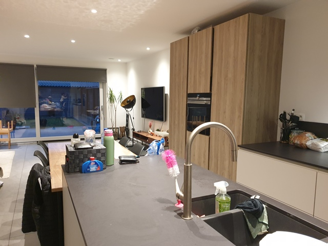 Deze moderne eigentijdse woning (BJ 2019) is als volgt ingedeeld : inkom met trap naar boven, toilet, moderne geïnstalleerde keuken, ruime berging, grote living met zicht op tuin en terras. Tuin en terras en tuinberging.